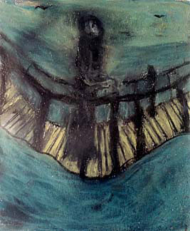 I don’t plan my paintings, I don’t make sketches, I begin and the marks I make suggest something else. It’s sometimes surprising what comes out, a whole series of bridges or staircases, for example. I don’t think about the meaning. Sometimes I see the meaning later, after the painting is done. I think painting for me is like acting. It is a cathartic release, still a shy person in many ways I feel like I can’t express myself in daily life. It is simply a way of life, it’s how I like to spend my time, it brings relief to a certain loneliness and melancholy that has followed me around most of my life. It brings excitement and hope, hope for a better life, for a real life, I have something to do. Contact: |
