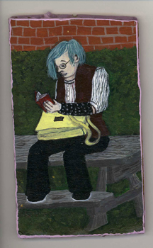 Little Blue Hair Reader. Acrylic/cardboard, 5"x3", 2010.